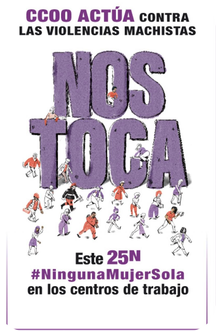 Desde CCOO continuamos en nuestro empeño por acabar con todas las formas de violencia contra las mujeres, tanto dentro como fuera de las empresas. Asumimos nuestra responsabilidad sindical para continuar en nuestra lucha y avanzar hacia una sociedad libre de violencias de género.